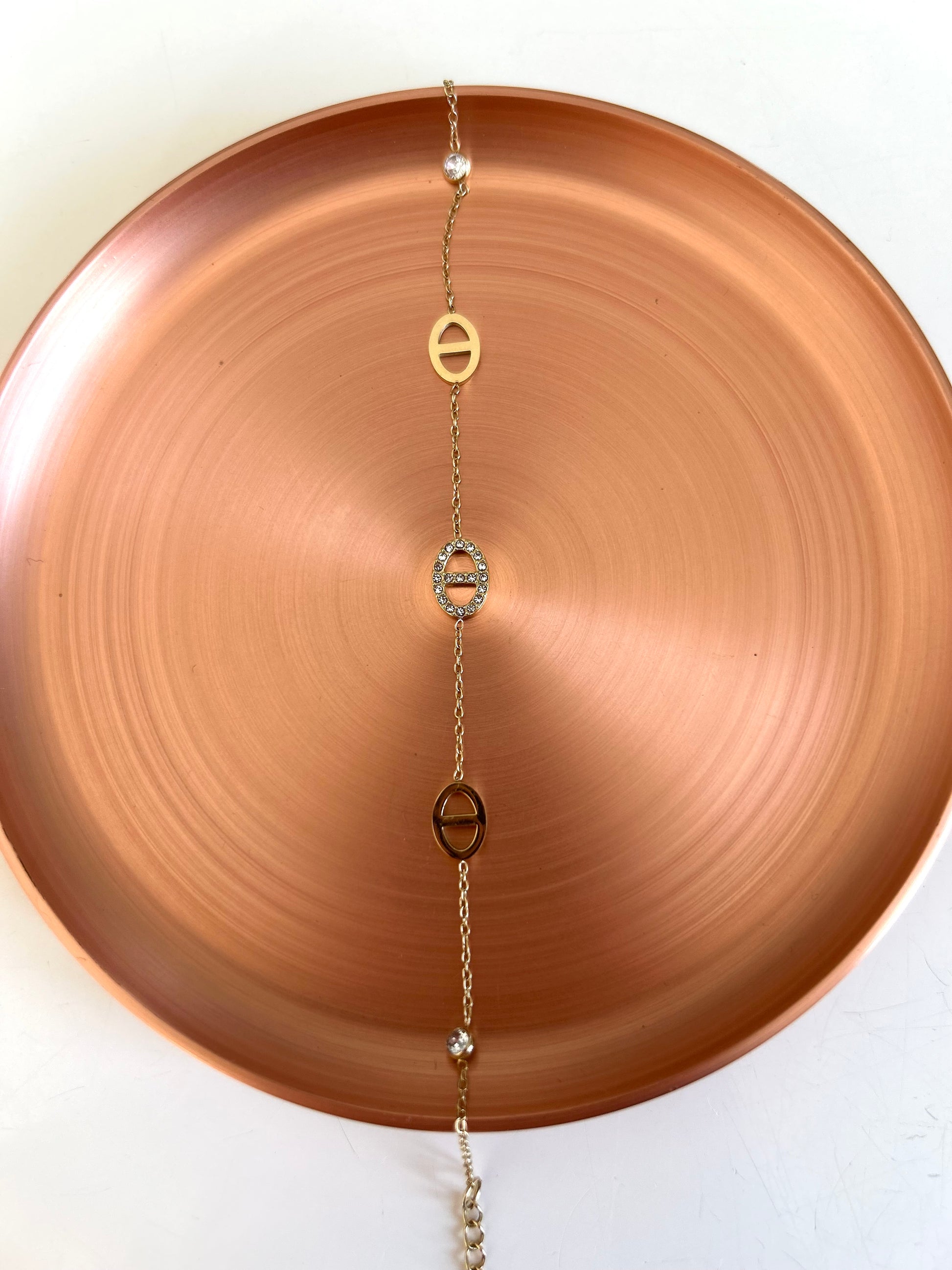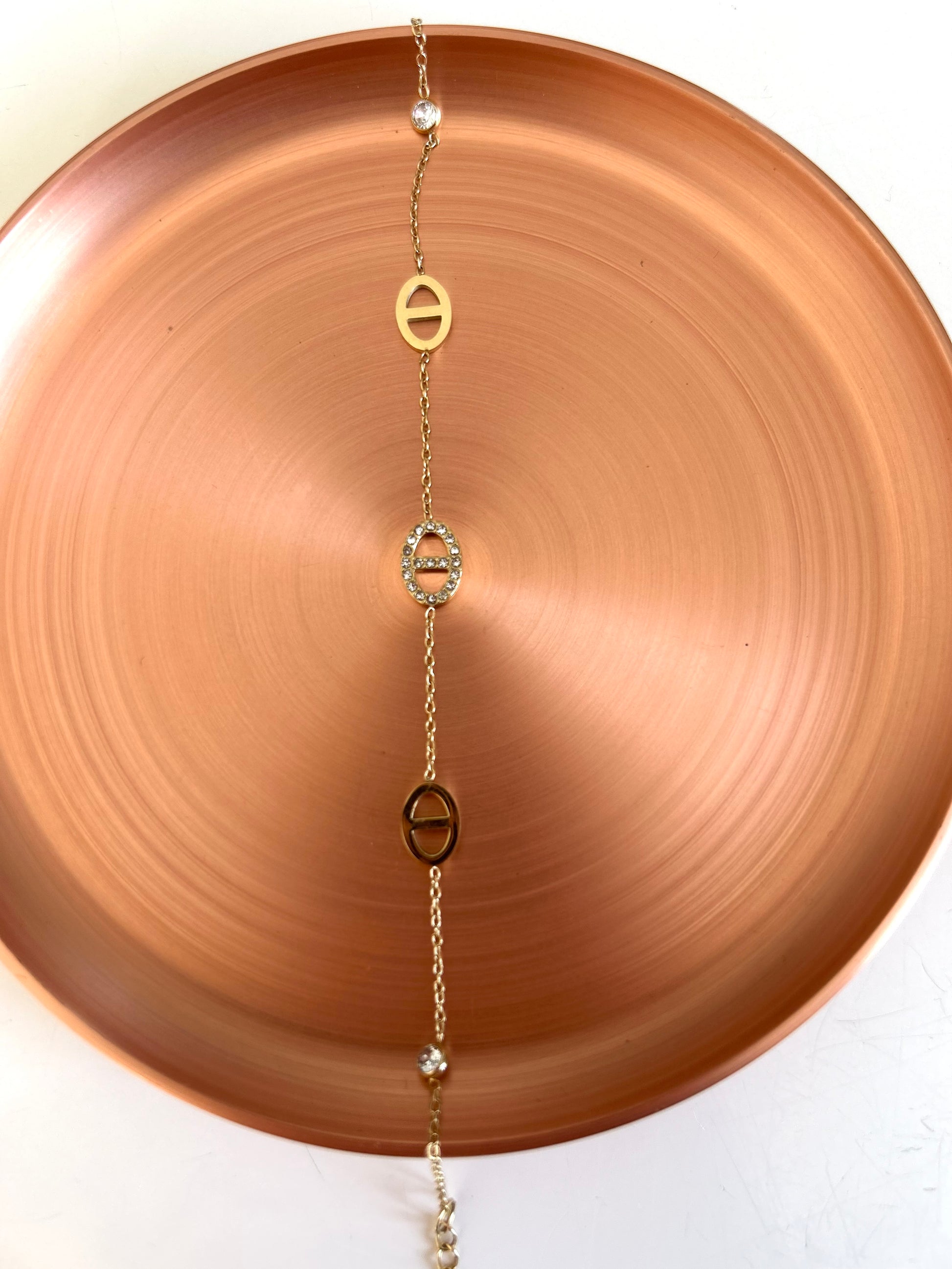 Affirmez votre style avec le bracelet "Marina" et ses célèbres maillons marine. Ce bijou au design audacieux et intemporel structure le poignet avec élégance. Sa finition dorée éclatante en fait une pièce forte, idéale pour apporter du caractère à une tenue minimaliste.
