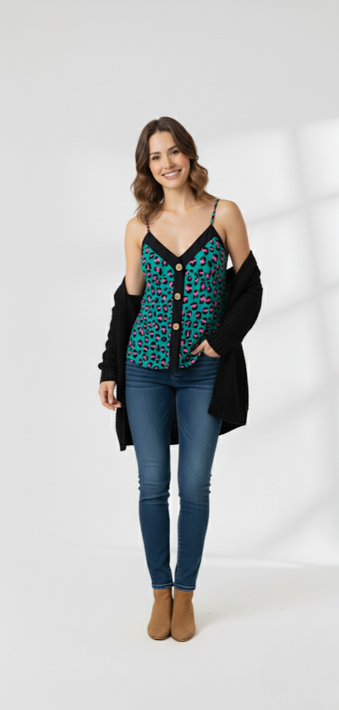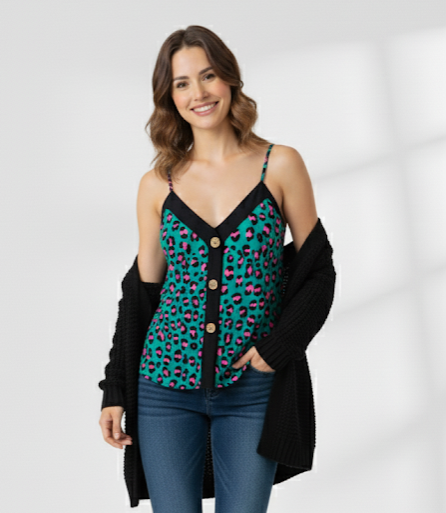 Apportez une touche sauvage et élégante à votre garde-robe avec ce caraco aux motifs léopard. Confectionné en viscose douce et légère, il offre un confort optimal tout au long de la journée. Ses bretelles réglables assurent un ajustement parfait et personnalisé, sublimant votre silhouette avec aisance. Idéal pour mixer avec vos bas préférés, ce caraco audacieux est un incontournable pour un style à la fois tendance et féminin.
