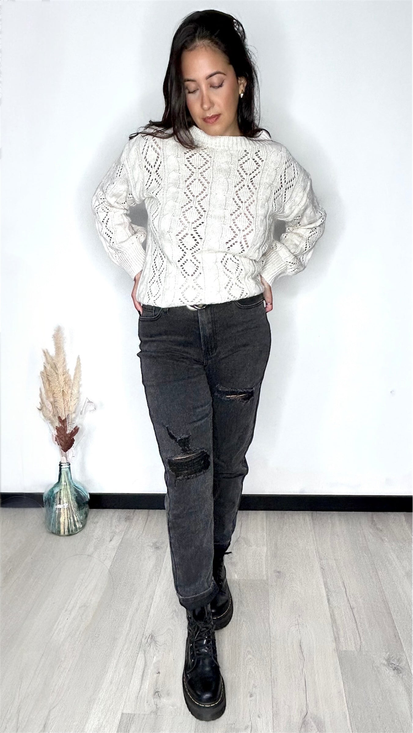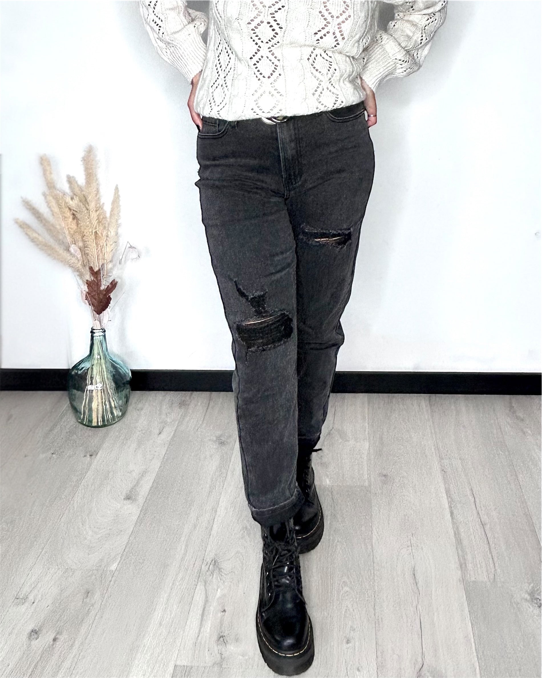 Ce jean mom usé taille haute allie style tendance et confort optimal grâce à sa matière stretch. Sa coupe décontractée met en valeur votre silhouette tout en offrant une grande liberté de mouvement, idéale pour un look casual chic au quotidien. Adoptez ce basique moderne pour une allure effortlessly stylée.