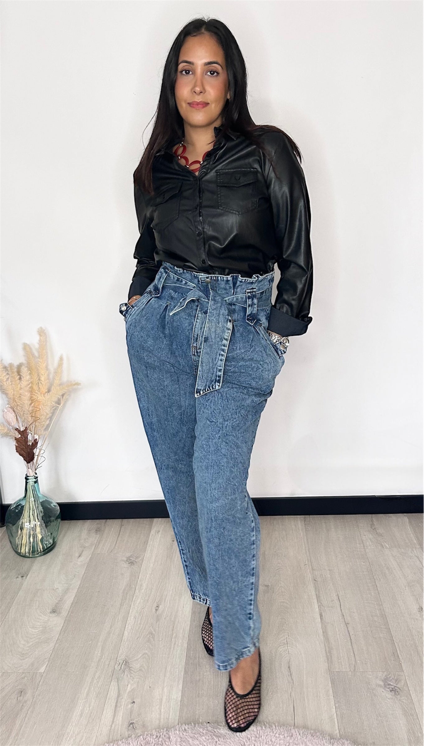 Ce jean paperbag noué, réalisé en 100 % coton, allie qualité et confort. Sa coupe structurée met en valeur la silhouette tout en assurant une parfaite aisance grâce à son tissu naturel. La ceinture nouée offre une finition soignée et un ajustement personnalisé, idéal pour un look à la fois élégant et professionnel.